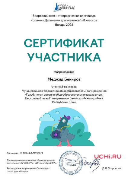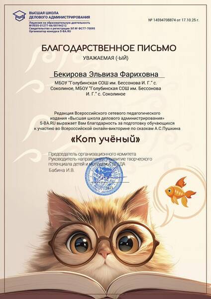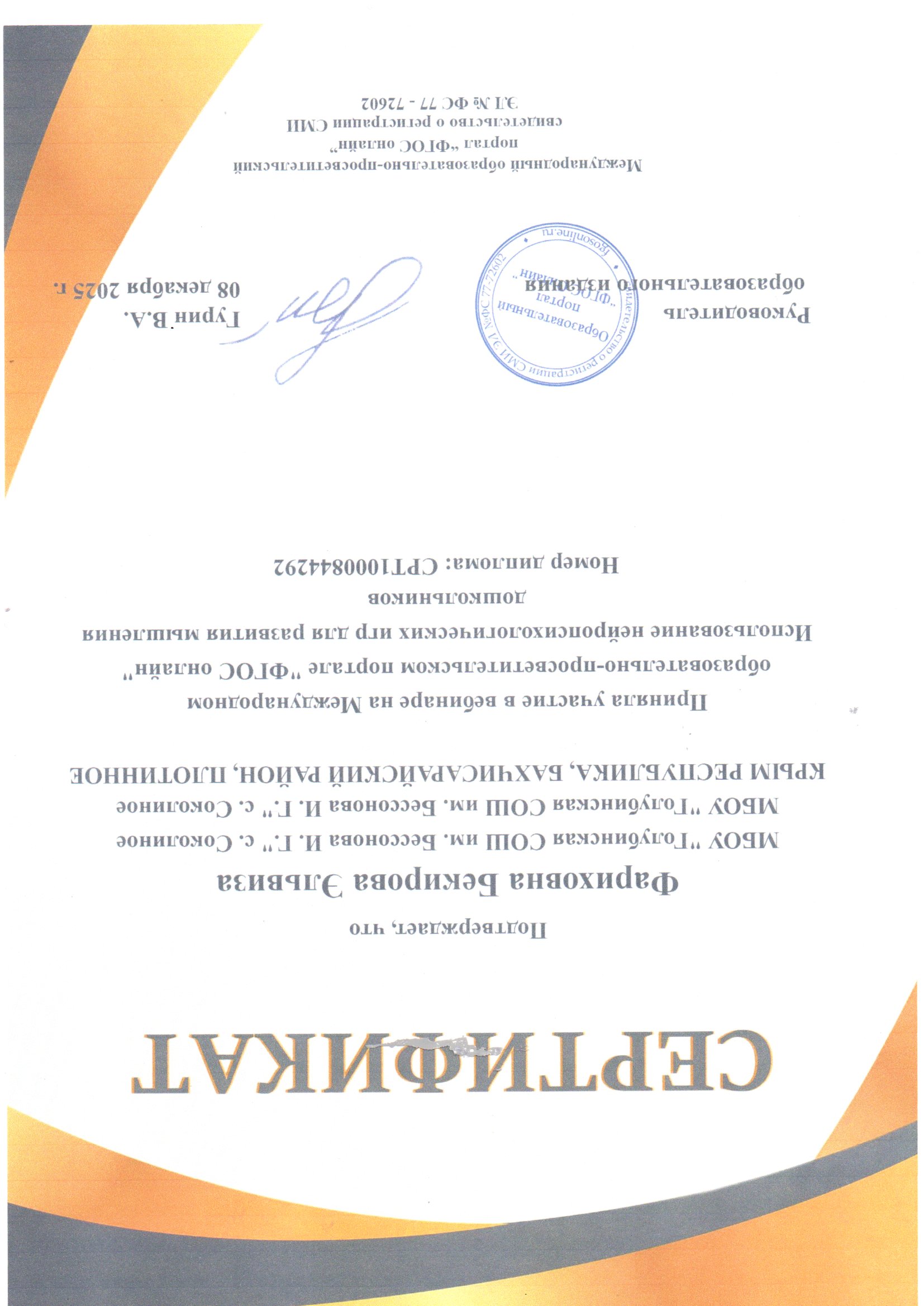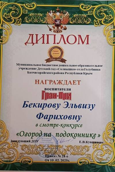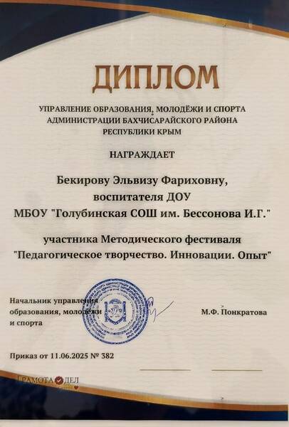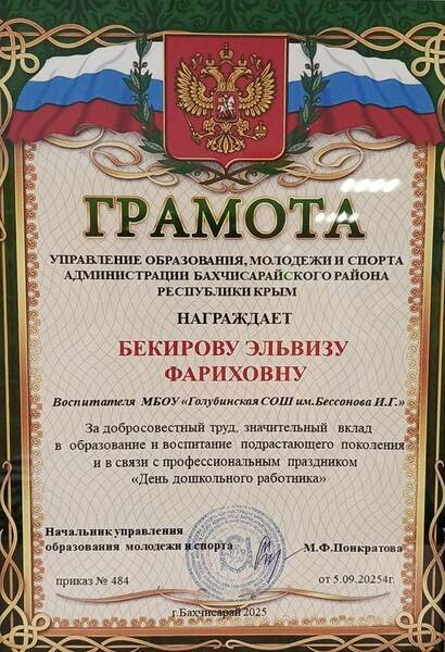 Муниципальное бюджетное общеобразовательное учреждение «Голубинская средняя общеобразовательная школа имени Бессонова Ивана Григорьевича» Бахчисарайского района Республики Крым