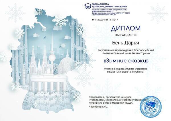 Что для меня важно в работе: Слушать. Дети говорят много — надо уметь слышать. Не просто кивать, а вслушиваться в каждую интонацию, замечать невысказанные тревоги, улавливать тот самый момент, когда малыш хочет поделиться чем‑то по‑настоящему важным. Иногда за обычным «А знаете что?..» скрывается целая вселенная переживаний. Вдохновлять. Любознательность — искра, которую легко погасить и так красиво разжечь. Я стараюсь быть тем человеком, который не даёт готовым ответам затмить радость поиска. Пусть ребёнок сам додумается, попробует, ошибётся и снова попробует — в этом и есть волшебство познания. Быть рядом. Не «над», а рядом — как партнёр в исследовании мира. Я не строгий судья и не всезнающий наставник, а тот, кто идёт рука об руку: вместе рассматриваем жука, вместе строим замок из песка, вместе придумываем историю про дракона. В этих совместных открытиях рождается доверие. Радоваться мелочам. Лужа‑океан, листок‑корабль, смешная букашка — это и есть детство. Я учусь у своих воспитанников видеть чудо в обыденном: в капельке росы на паутинке, в причудливой форме облака, в звуках дождя по крыше. Их способность восхищаться простым напоминает мне, что жизнь — это не гонка за большими достижениями, а череда маленьких волшебных моментов.